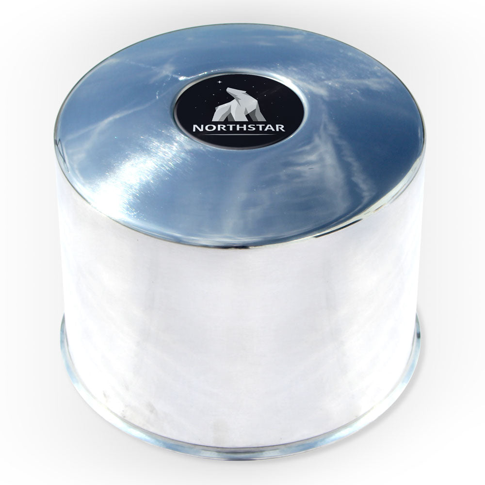Polished Aluminum Hub Cover to fit Dodge Ram 3500 or Chevrolet / GMC with 8 on 6.5" Bolt Circle and a 4.75" Height. Secured by the lug nuts make these the most secure hub covers on the market. Made in the USA.