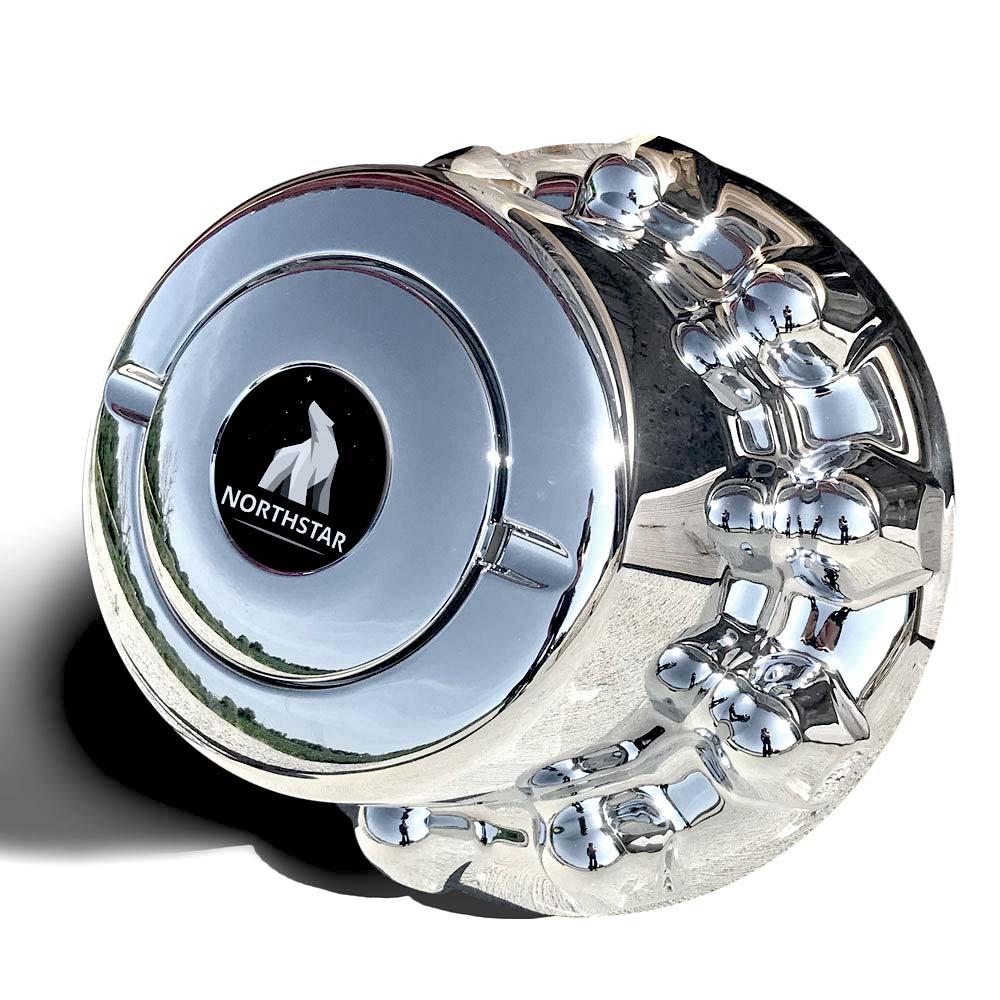 Chromed ABS plastic hub cover for heavy duty trucks with 10 lug, hub pilot wheels. The covers are easy to install and use Jam Nuts to secure the covers to your vehicle. This insures that the covers don't fall off during your travels. The center piece pops in and out easily to access the hubs inside. These Northstar™ covers will enhance the look of the polished aluminum wheels on your truck.